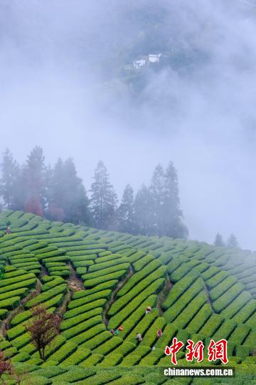湖北恩施:茶山叠翠 茶农“画”中采春茶